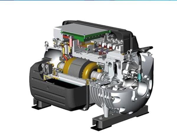制冷機(jī)組由4個(gè)基本部分即壓縮機(jī)、冷凝器、節(jié)流部件、蒸發(fā)器組成。由銅管將四大件按一定順序連接成一個(gè)封閉系統(tǒng),系統(tǒng)內(nèi)充注一定量的制冷劑。一般的空調(diào)用制冷劑為氟里昂,以往通常采用的是R22,有些空調(diào)的氟里昂已經(jīng)采用新型的環(huán)保型制冷劑R407。根據(jù)冷藏室的熱負(fù)荷量和蒸發(fā)器的制冷量,選擇壓縮機(jī),使運(yùn)行中壓縮機(jī)的制冷量與設(shè)備的熱負(fù)荷和制冷量相適應(yīng)。